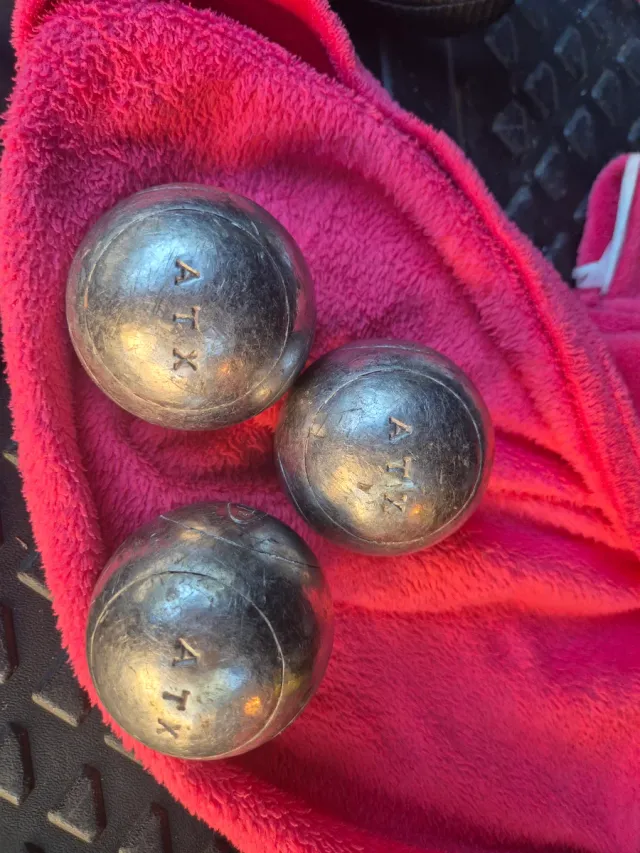 Conjunto de tres bolas de petanca ATX. - Diámetro de 72 mm. - Peso de 690 gramos.