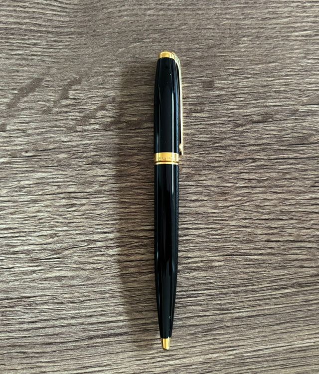 Elegante bolígrafo de la marca Dupont. - Color negro brillante. - Detalles dorados. - Diseño clásico y sofisticado.