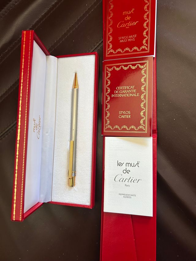 Detalles del productoVendo bolígrafo Les Must de Cartier original, totalmente nuevo y sin uso. Conserva su caja roja original de Cartier y toda la documentación/certificados que aparecen en las fotos.