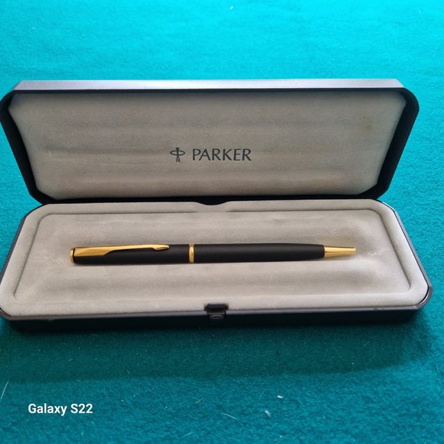 Detalles del productoElegante bolígrafo Parker en color negro con detalles dorados. Se encuentra en perfecto estado.
