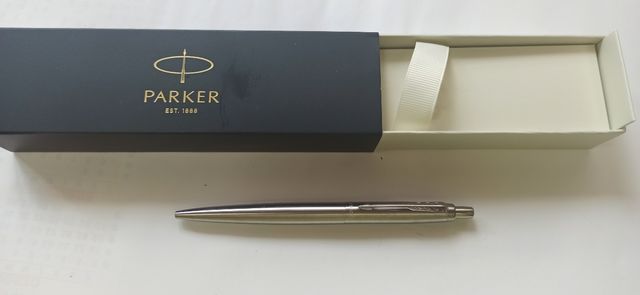 Bolígrafo PARKER Jotter XL Monochrome. Cuerpo de acero inoxidable plateado. Punta mediana,tamaño de la linea 0'5 mm. Tinta azul Peso 19 gr. Nuevo,a estrenar.