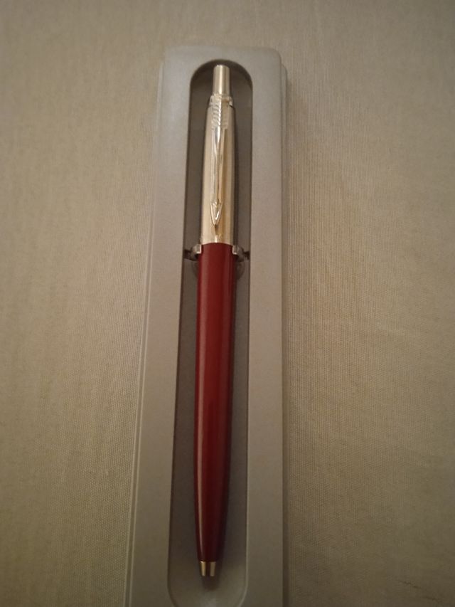 Bolígrafo Parker de color rojo. Más de 35 años de antigüedad. Sin uso. Aún escribe. - Diseño elegante. - Clip icónico de Parker.