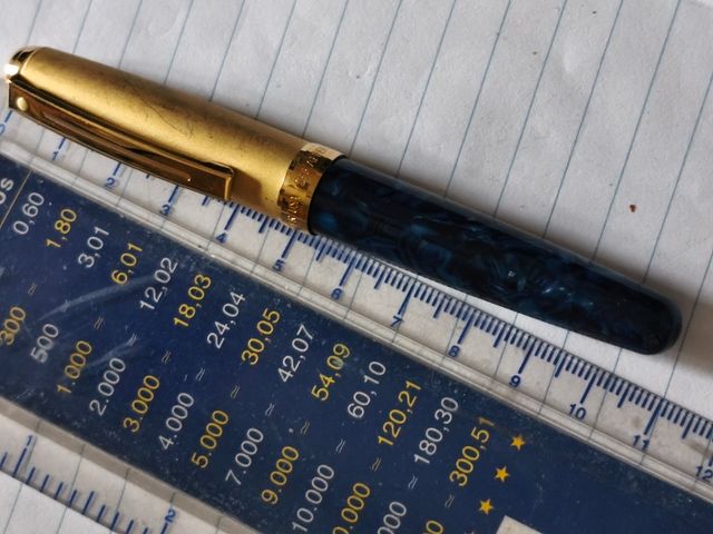 Detalles del productoElegante boli con detalles dorados y cuerpo de resina azul veteada. Un accesorio clásico para escribir.