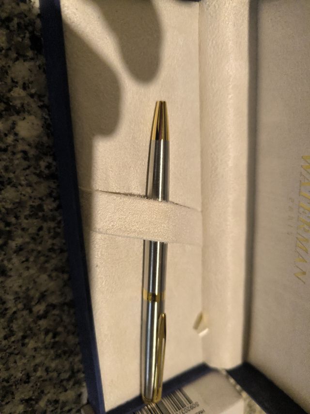 Bolígrafo Waterman Hemisphere totalmente nuevo de color dorado brillo con escritura azul
