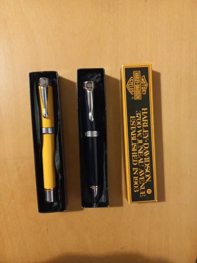 Detalles del productoSet de bolígrafo y pluma estilográfica de la marca Harley Davidson.