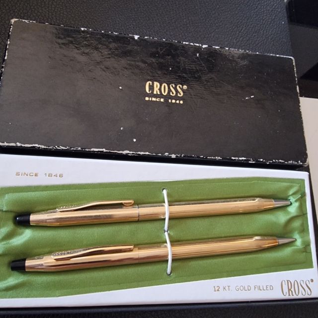 Detalles del productoHola.Vendo bolígrafo y portaminas marca CROSS bañados en oro de 14 kilates. Muy buen estado..Sin usar Medidas del producto