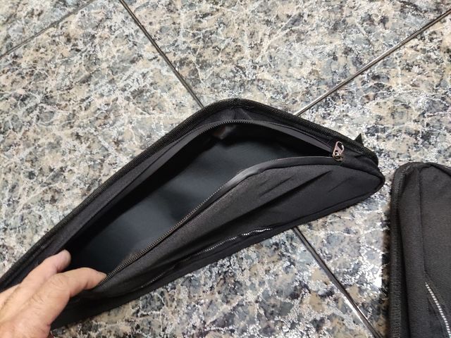 Dos bolsas laterales con cremallera van cogidas con velcro