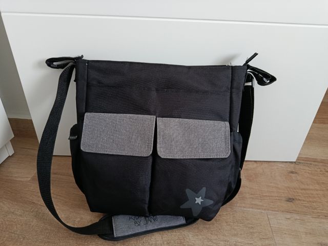 Detalles del productoBolso organizador para carrito de bebé de la marca Jane. Diseño moderno en color negro con detalles en gris.
