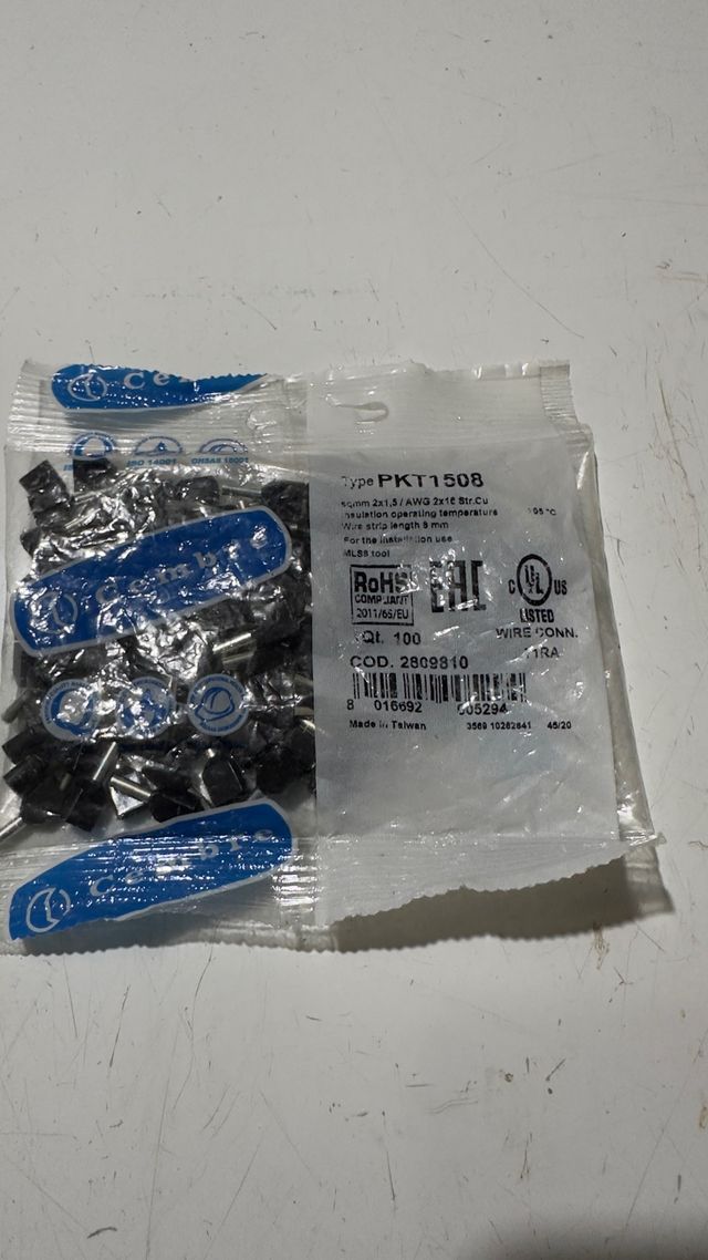 Bolsa de punteras dobles huecas Cembre. - Tipo PKT1508 - Sección: 2.5 mm² (AWG 14) - Cantidad: 100 unidades - Sin abrir