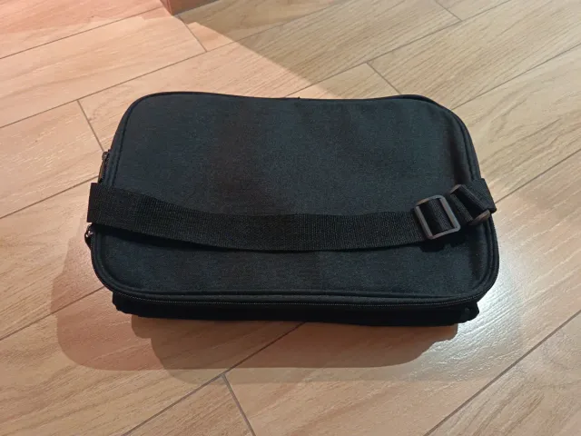 Detalles del productoBolsa de almacenamiento de la marca Stanley. Es de color negro y cuenta con una correa ajustable.