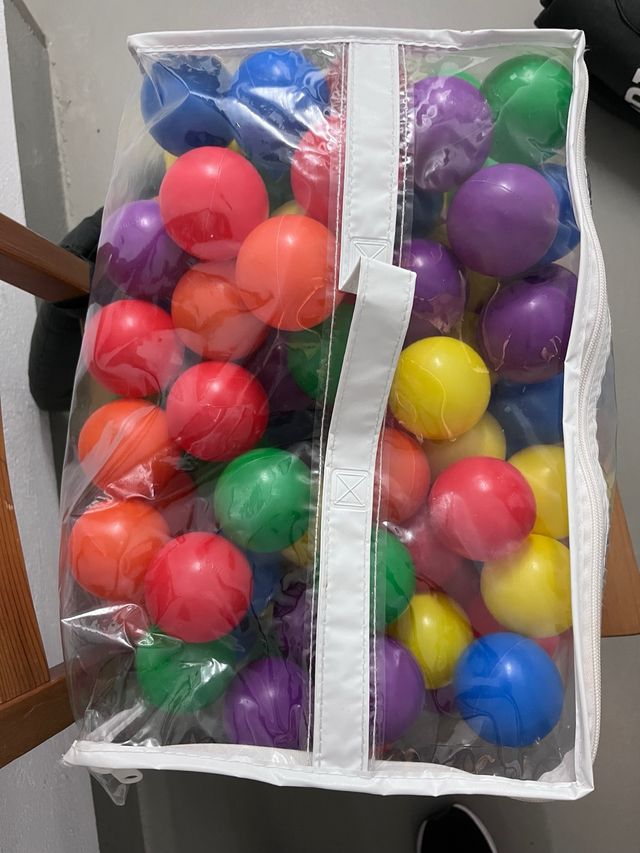 Bolsa transparente llena de bolas de colores para jugar. - Bolas de plástico. - Variedad de colores vivos. - Ideal para juegos infantiles.