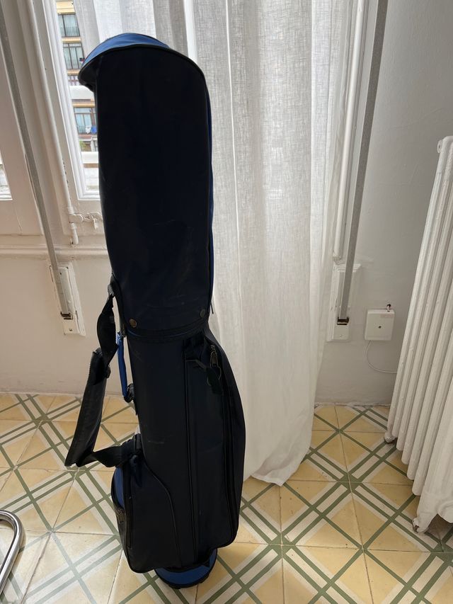 Bolsa de golf de color azul marino, con espacio para varios palos y accesorios. - Incluye 3 palos de golf. - Incluye 1 madera de golf.