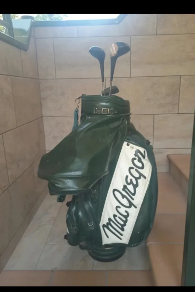 Bolsa de golf Mac Gregor de color verde con palos incluidos. - Diseño clásico. - Incluye varios palos de golf.