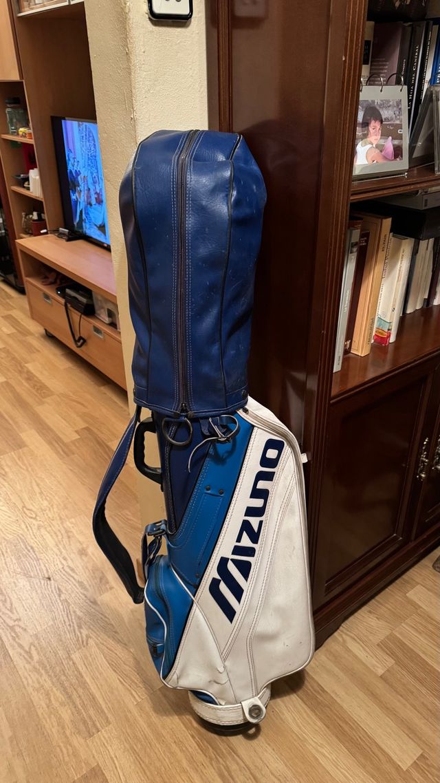 Detalles del productoBolsa de golf Mizuno en color azul y blanco, con un diseño moderno y espacioso. Incluye 6 palos.