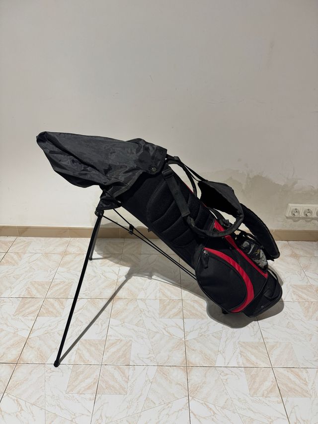 Detalles del productoBolsa de golf con un diseño moderno en negro y detalles rojos. Cuenta con patas plegables para mayor estabilidad.