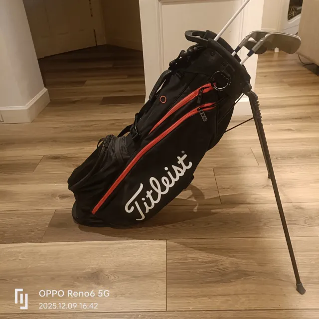 Detalles del productoBolsa de golf Titleist Players 4 en color negro con detalles en rojo. Está nueva. Solo se ha usado en dos viajes.