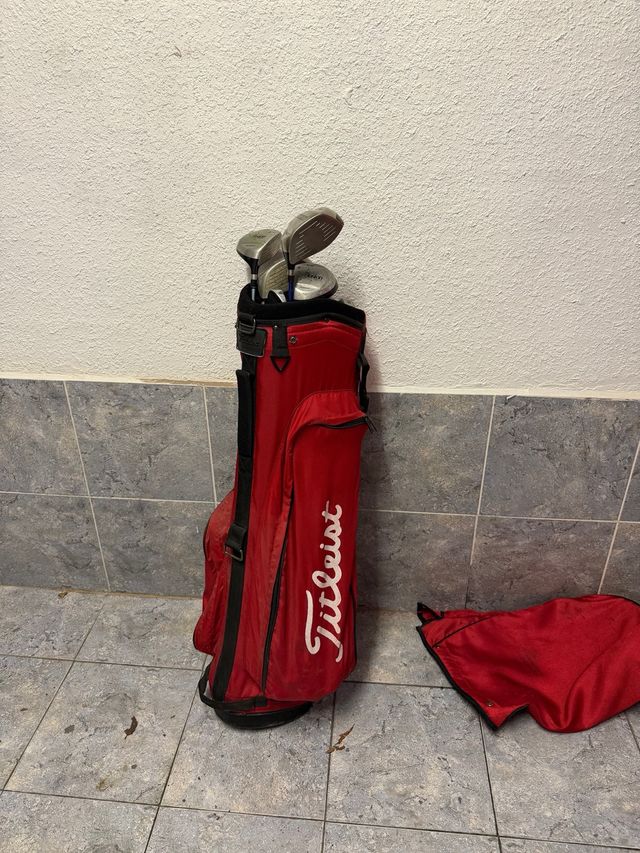 Detalles del productoBolsa de golf Titleist en color rojo. Incluye palos.