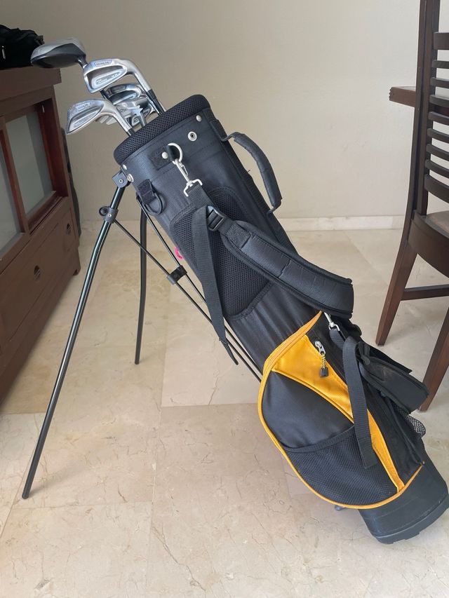 bolsa silverline con medio juego de palos, se vende por falta de uso, de regalo guante, algunas pelotas y bolsa de viaje de regalo.