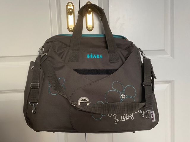 bolsa de lactancia para carro de bebe. marca Beaba. multiples bolsillos interiores y exteriores, cambiador, portachupetes