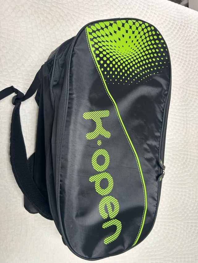 Detalles del productoBolsa de pádel K-open en color negro con detalles en verde.