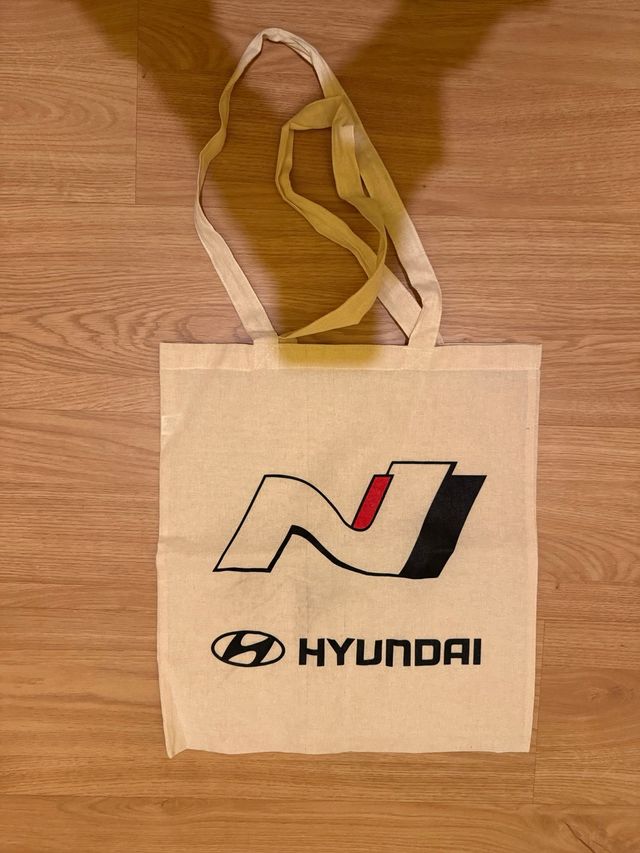 Bolsa de tela serigrafiada con el logo N de hyundai. Medidas sin asas, 41cm de largo x 38cm de ancho
