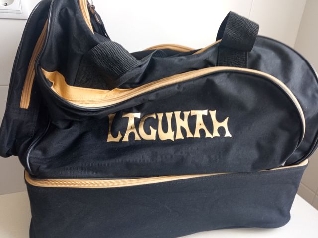 Detalles del productoBolsa de deporte de la marca Lagunak, en color negro y beige. Está en buen estado y es ideal para llevar ropa y calzado deportivo. Medidas: