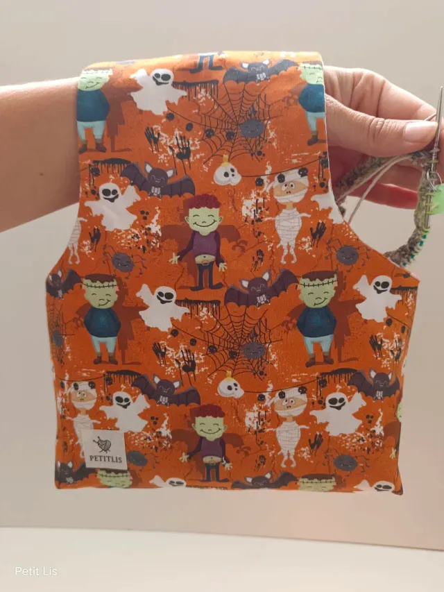 Detalles del productoPráctica bolsa para labores con un divertido estampado de Halloween. Ideal para llevar tus proyectos de tejido o costura.