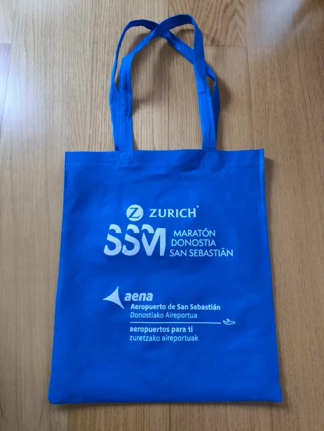 Detalles del productoBolsa de tela azul conmemorativa del Maratón de San Sebastián.