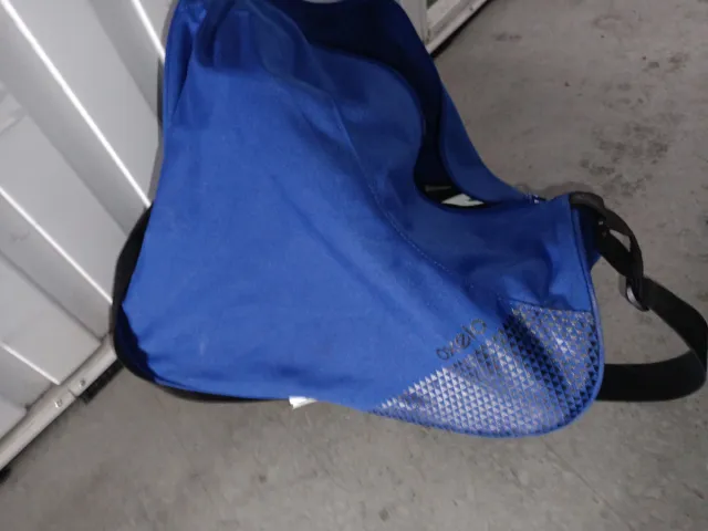 Bolsa de color azul, diseñada para transportar patines. Oxelo - Compartimento principal espacioso. - Malla lateral para ventilación. - Correa ajustable para el hombro.