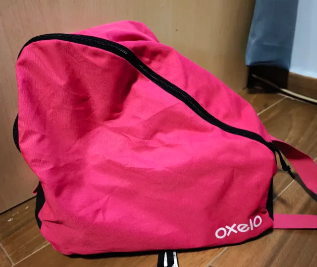 Práctica bolsa de color rosa fucsia, ideal para transportar patines. - Marca: Oxelo - Cierre con cremallera negra - Correa de transporte