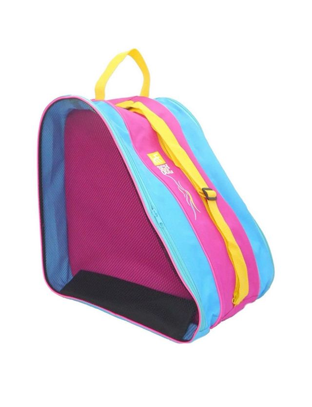 Detalles del productoPráctica bolsa para transportar KRF Scholl tus patines de color rosa y azul. Asa de transporte superior. Cierre con cremallera. Correas ajustables. Tiene la forma triangular para que la mochila se adapte totalmente al patín. Esta fabricada con un material súper resistente para que pueda aguantar todo el peso de los patines sin romperse con facilidad.