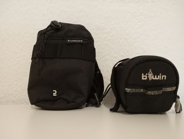Detalles del productoDos bolsas negras para accesorios de bicicleta de montaña.