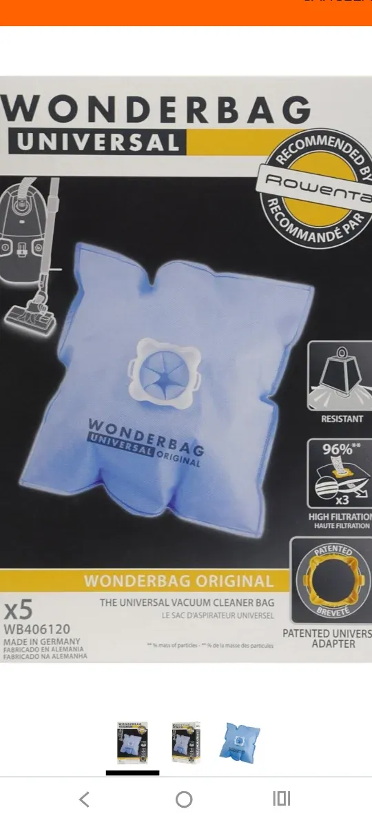 Detalles del productoPack de 5 bolsas para aspiradora Rowenta Wonderbag Universal Original.