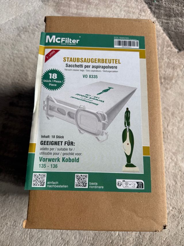 Detalles del productoPack de 18 bolsas para aspiradora Vorwerk Kobold. TENGO 6 CAJAS DE 18