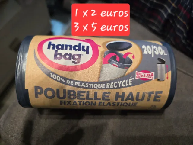 Detalles del productoPack de bolsas de basura Handy Bag, ideales para cubos de alta capacidad.