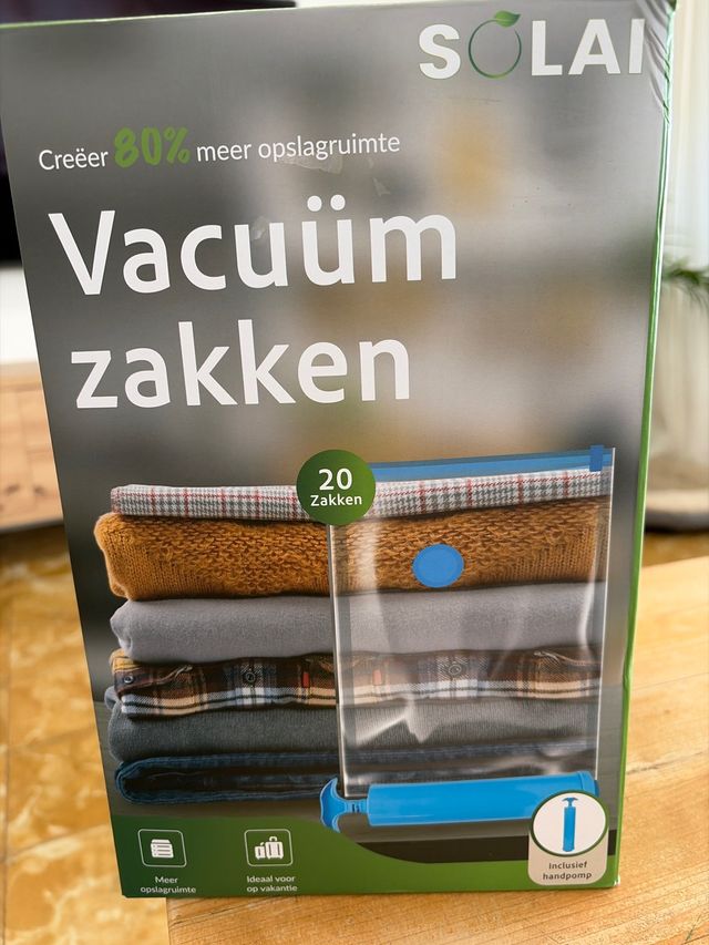 Pack de 20 bolsas de almacenamiento al vacío para optimizar el espacio en tu hogar o para llevar de viaje. Permiten reducir el volumen de la ropa y otros textiles hasta un 80%.