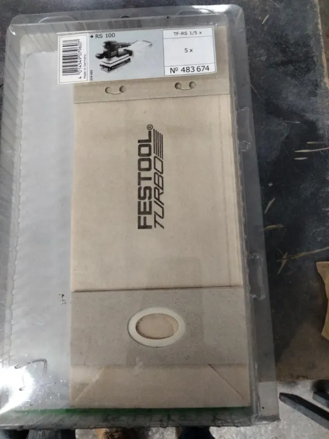Se venden 3 cajas de bolsas para lijadora Festool. - Modelo: TF-RS 1/5 x. - Referencia: Nº 483 674. - Cantidad: 5 bolsas por caja.