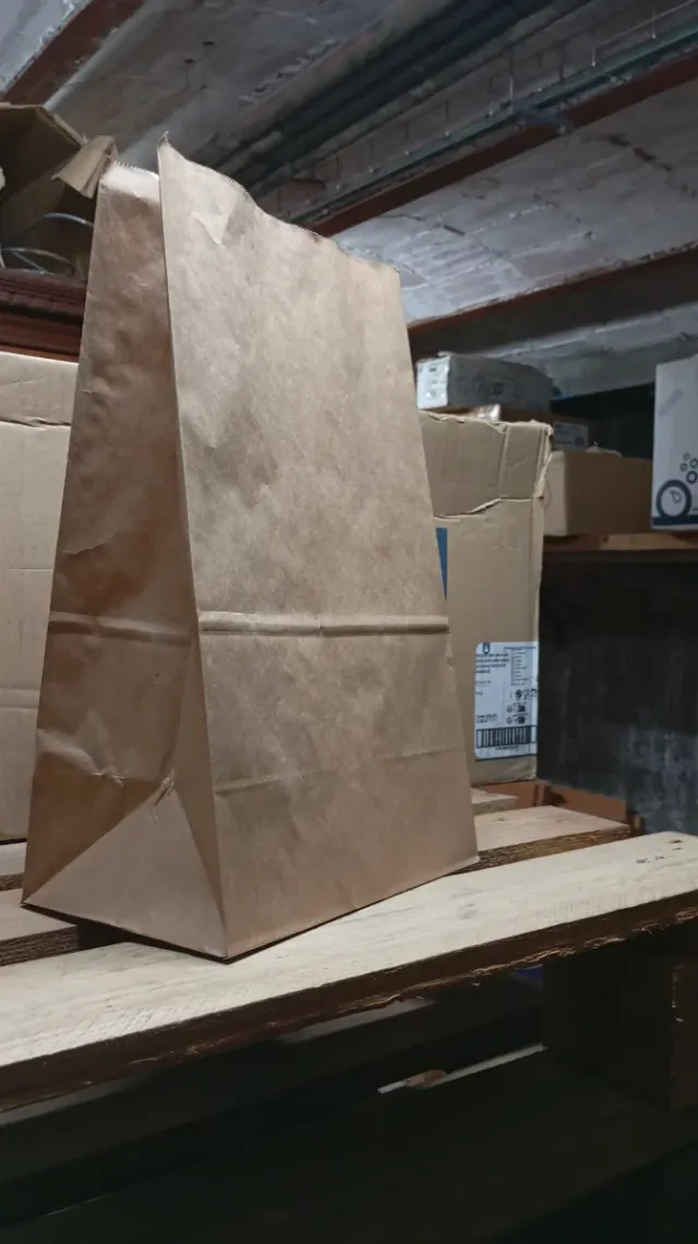 Pack de 500 bolsas de papel tipo americano. - Material: Papel kraft. - Color: Marrón. TALLA L (22x14x37'5)