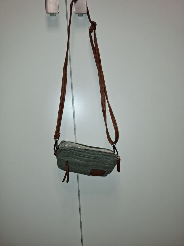 color verde caza,correa color camel. bandolera pequeña sin estrenar