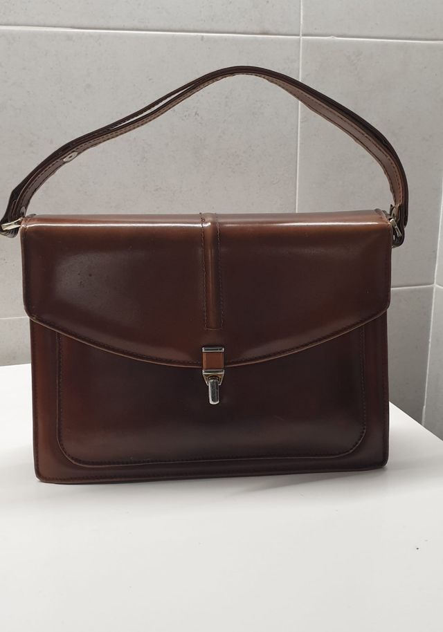 Bolso vintage de piel.2 departamentos interiores y bolsillo con cremallera.Asa corta extensible