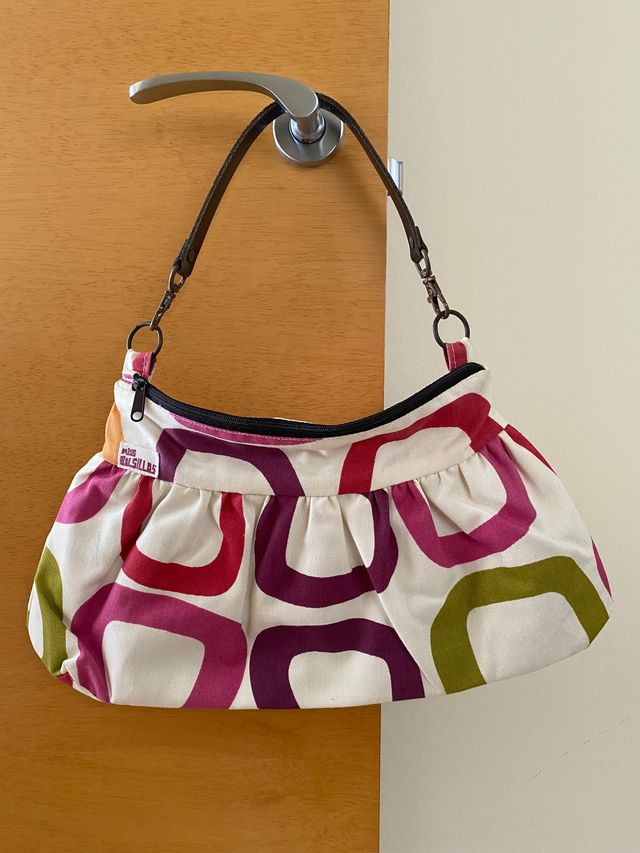 Detalles del productoBolso de algodón, de mano o al hombro. Cierre con cremallera. Tiene un bolsillo interior también con cremallera. Mide 30cm de ancho, 20cm de alto y 10cm de fondo. Está nuevo a estrenar.
