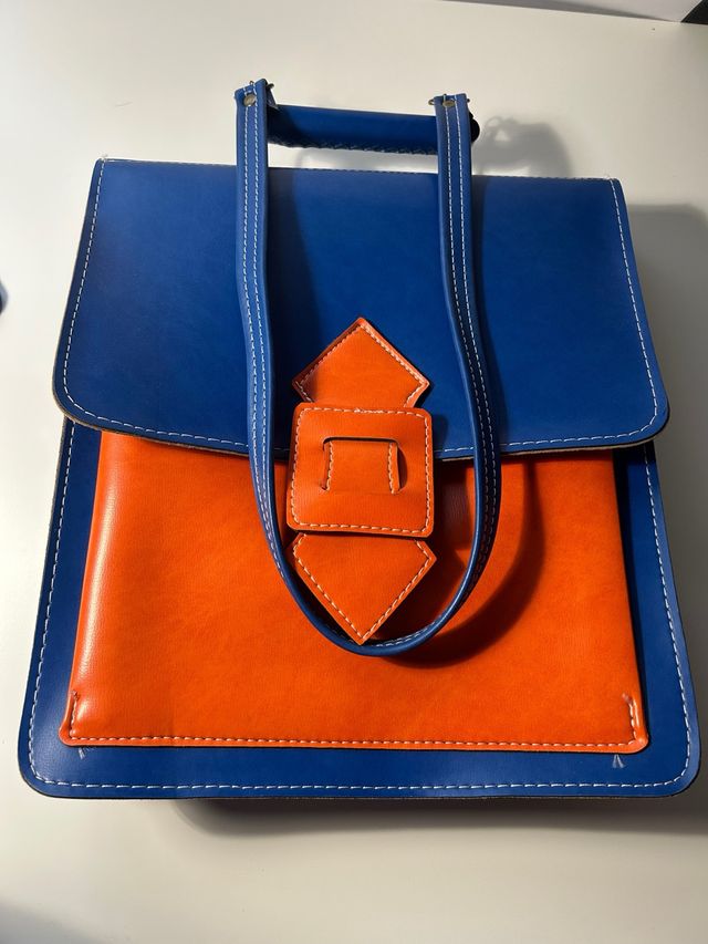Bolso azul y naranja
