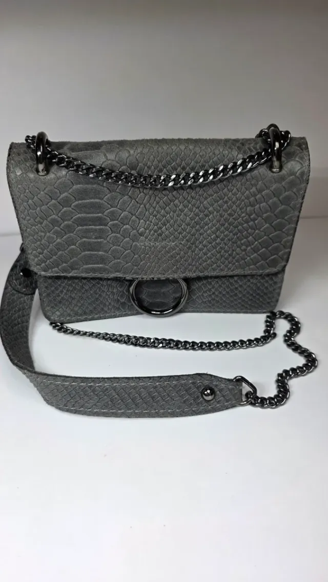 Bolso Bandolera Cuero Genuino Made in Italy Gris