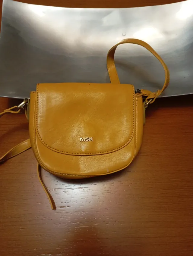 Bolso bandolera de piel sintética en color mostaza. Tiene un diseño moderno y práctico. - Cierre con solapa. - Correa ajustable. - Logo de la marca MSK en la solapa.
