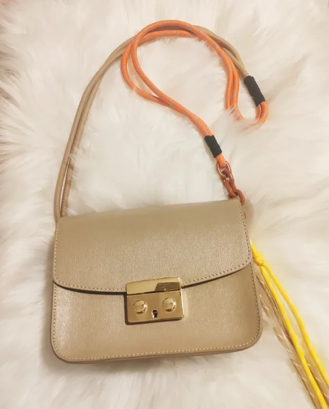 Bolso bandolera piel beige con detalles dorados