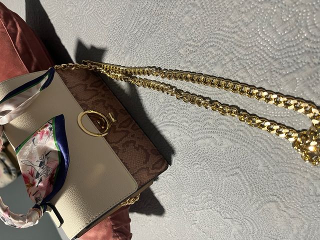 Bolso Beige y Marrón con Cadena Dorada