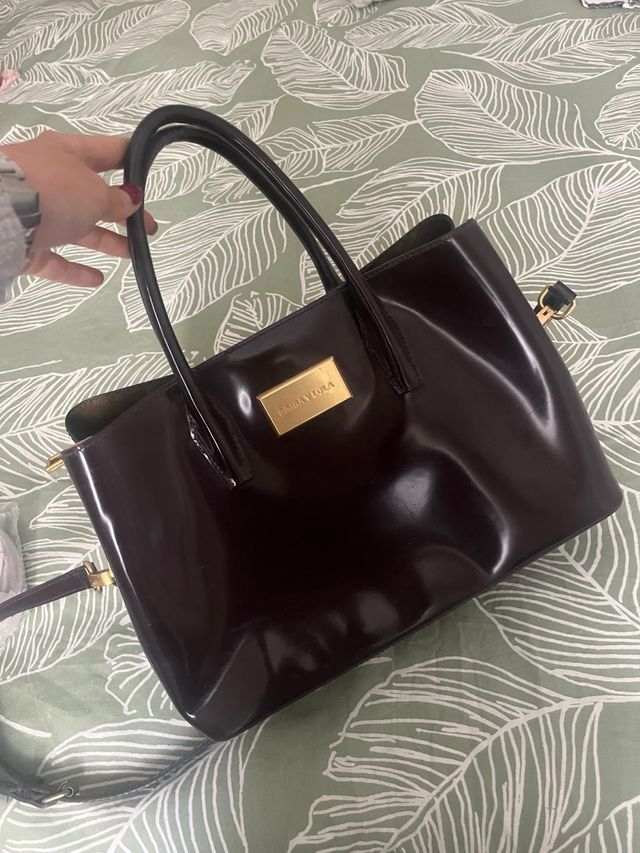 Bolso de Bimba y Lola con acabado tipo charol. - Color granate. - Diseño tipo shopper. - Asa de mano. - Incluye correa para llevar al hombro.