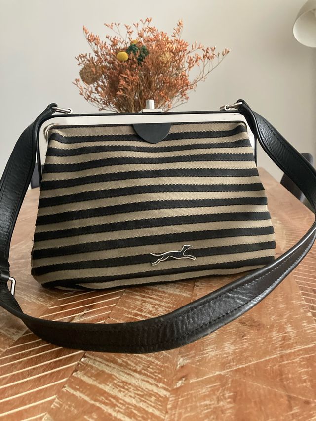 Bolso Bimba y Lola rayas topo y negro en tela .