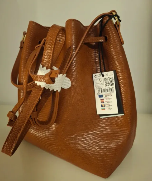 Bolso bucket Cortefiel Piel Serpiente Marrón