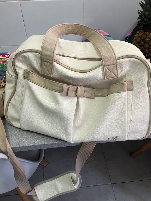 Detalles del productoConjunto Mayoral de piel color crudo y beige. Compuesto de bolso, cambiador y bolsa isotermica de alimentos (esta última a estrenar y con eriqueta).